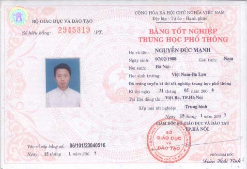 Các bạn có thể sử dụng tấm Bằng THPT Bắc Giang này đi xin việc làm , nâng bằng lái xe ,đi học , đi du học , XKLĐ (xuất khẩu lao động) khắp mọi nơi.