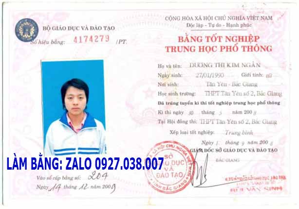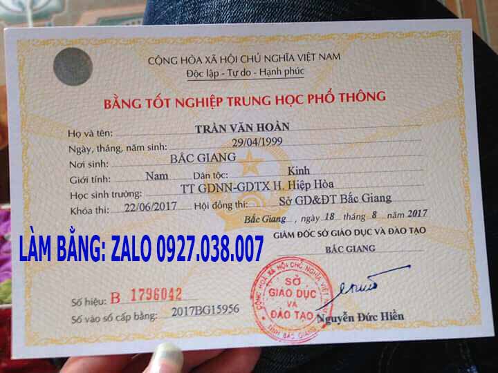 Bằng THPT – Bằng Cấp 3 Bắc Giang gồm đầy đủ hồ sơ, bảng điểm và học bạ. Làm nhanh, giá rẻ, đặc biệt không lấy tiền đặt cọc trước.